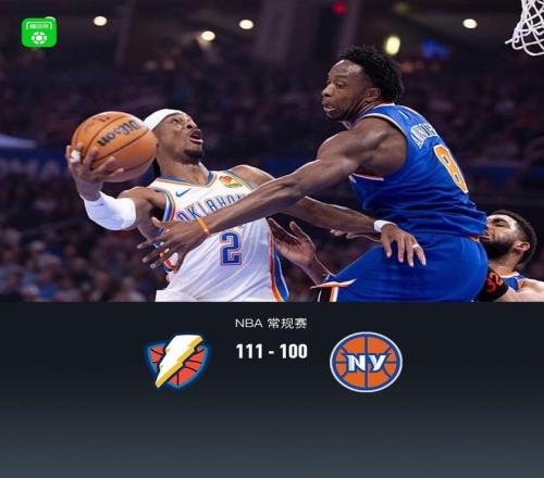 第四節(jié)雷霆亞歷山大拿下10分,尼克斯唐斯拿下9分,最終雷霆111-98戰(zhàn)勝尼克斯