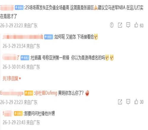 輕松拿下對手取得大勝,這本應該是一件值得高興的事,但賽后廣東球迷的意見卻是很大,出戰(zhàn)38分鐘,投籃5投1中僅得2分6籃板6助攻,但正負值達到恐怖的+49的高張皓嘉,再次成為眾矢之的,不少廣東球迷質(zhì)疑杜鋒的用人選擇,明明是一場沒什么勝負懸念的練兵比賽,張皓嘉這種水平都能接近打滿全場,為何黃明依一點機會都不給?