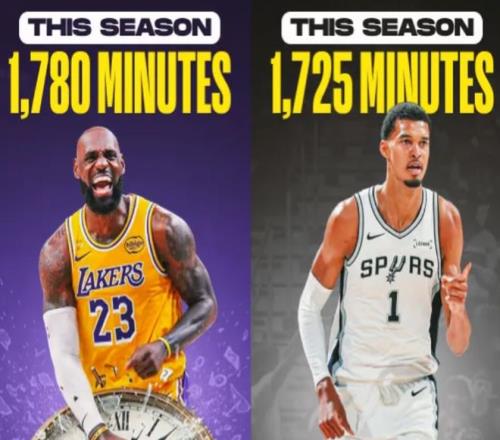 根據(jù)數(shù)據(jù)顯示,本賽季至今,詹姆斯出戰(zhàn)了1780分鐘,而文班亞馬有1725分鐘!