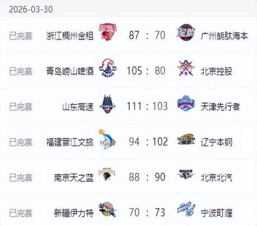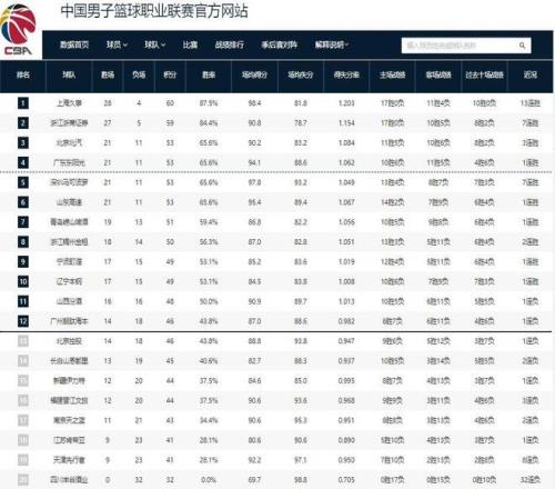 CBA最新排名!上海男籃一枝獨秀,廣東第四北京險勝遼寧山東止敗