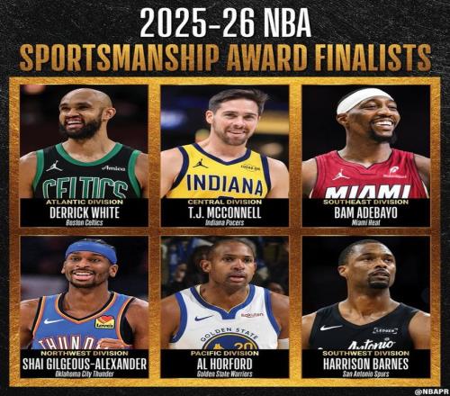 北京時間4月1日,NBA官方公布了2025-26賽季兩項獎項的最終候選名單,分別列出了6名體育道德風尚獎候選人與12名年度最佳隊友獎候選人。