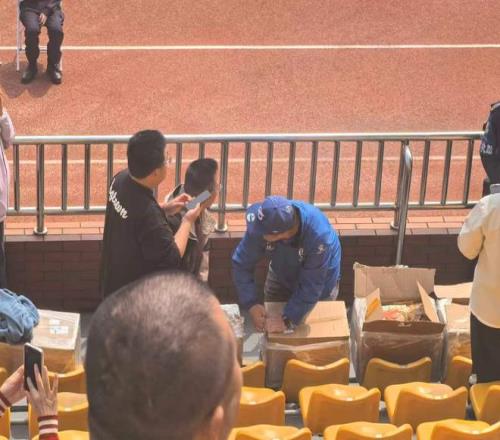 從現(xiàn)場照片來看,該球迷并沒有食言,他將數(shù)箱雞架搬到了比賽現(xiàn)場的看臺上,并將雞架免費發(fā)放給現(xiàn)場觀賽的球迷。
