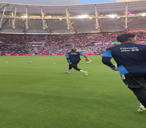 邁阿密國(guó)際新主場(chǎng)揭幕戰(zhàn),大羅、貝克漢姆來(lái)到球場(chǎng)觀看比賽