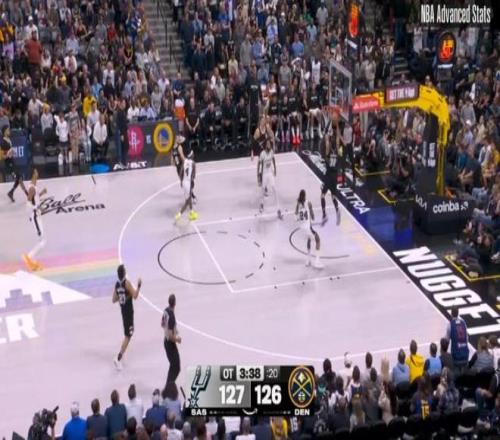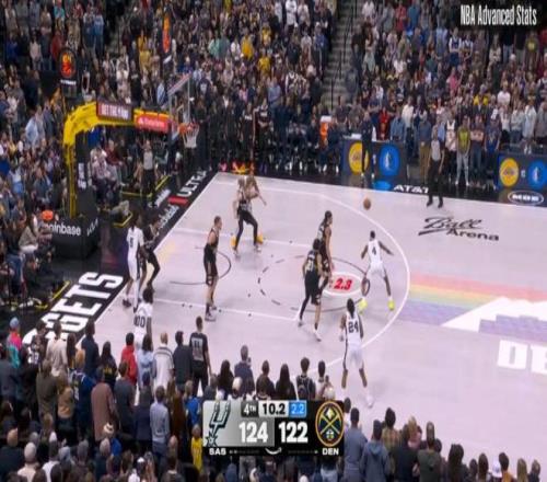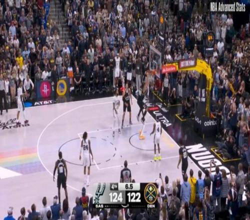第四節(jié)剩下20秒前,馬刺124-122領(lǐng)先掘金2分,隨后的三個(gè)回合: