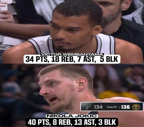 ——約基奇,40分8籃板13助攻3蓋帽0失誤,投籃25中13,三分5中1,罰球15中13,正負(fù)值+12