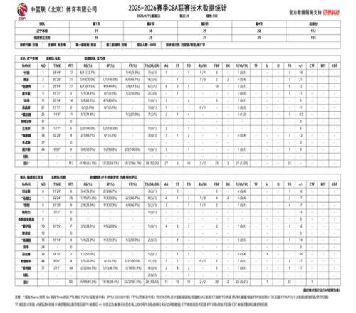 2025-2026賽季CBA常規(guī)賽第三十六輪,遼寧本鋼對(duì)陣福建晉江文旅的比賽于7日晚在遼寧體育館進(jìn)行,遼寧本鋼隊(duì)最終以112:103擊敗福建晉江文旅。