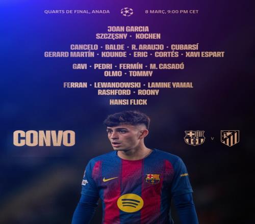巴薩對(duì)陣馬競(jìng)首回合名單:萊萬(wàn)、亞馬爾在列,貝爾納爾缺席