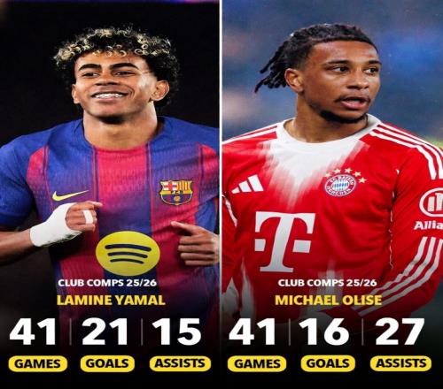 外媒列出了本賽季亞馬爾和奧利塞的數(shù)據,并將兩人稱為當今足壇最出色的右邊鋒。