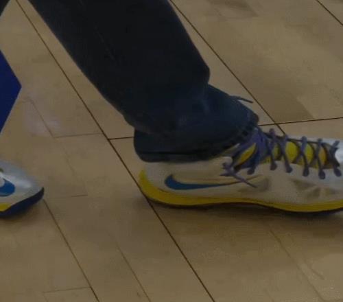 這表現(xiàn)絕對是復(fù)古級別的!有趣的是,這場比賽詹姆斯的經(jīng)典簽名鞋Nike LeBron X也來到了現(xiàn)場,但穿它的卻不是老詹本人,而是因為傷病管理坐在場下輪休的斯蒂芬·庫里。