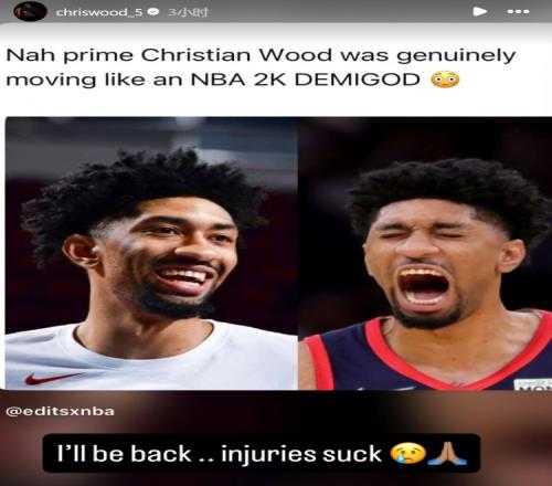 伍德寫道:“我會(huì)回來的,傷病太糟糕了?!?/p>