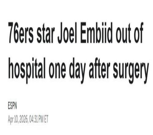 北京時間4月11日,76人球星喬爾-恩比德已從休斯頓一家醫(yī)院出院,正返回費城。球隊今日表示,恩比德目前暫無明確復(fù)出時間表。此前報道稱,NBA相似病例平均缺陣約23天。