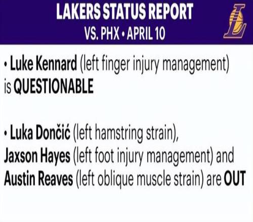 顯然,湖人接下來最核心的擔(dān)憂是兩位核心球星東契奇和里夫斯的傷情。兩人在不久前43分慘敗俄克拉荷馬城雷霆的比賽中受傷,目前仍在恢復(fù)中。