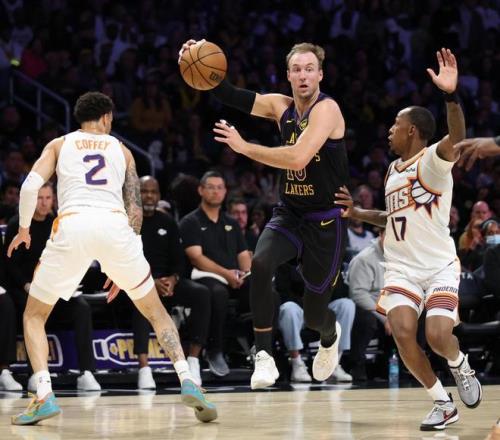 北京時間4月11日,NBA常規(guī)賽繼續(xù)火熱進行。湖人坐鎮(zhèn)主場與太陽展開對決,背靠背作戰(zhàn)的紫金軍團面臨著嚴峻的體能考驗。盧卡東契奇、里夫斯、海斯繼續(xù)傷停,斯瑪特傷愈復出擔任替補,雷迪克沿用了勒布朗詹姆斯、拉拉維亞、肯納德、八村塁與艾頓的首發(fā)五虎。暫列西部第4的湖人,依舊致力于沖擊前3。菲尼克斯已經(jīng)鎖定西部第7,德文布克、杰倫格林、古德溫3大主要輪換傷停,太陽隊的首發(fā)五虎調(diào)整為格雷森阿倫、狄龍布魯克斯、鄧恩、吉萊斯皮與馬克威廉姆斯。