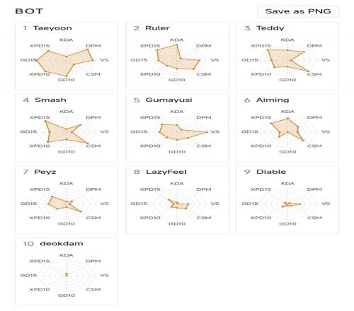 還有高手!LCK下路位數(shù)據(jù)雷達(dá):Diable開泯deokdam圖中僅兩點(diǎn):