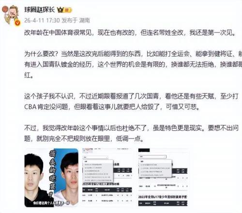 改年齡改名字國青小將惹爭議,籃協(xié)表態(tài),媒體人:第一次見