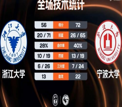 末節(jié)決戰(zhàn),雙方展開(kāi)拉鋸戰(zhàn),李欣洋和石凱旭接連三分8-0追分,趙哲軒三分強(qiáng)勢(shì)回應(yīng)止血,雙方圍繞著十幾分分差拉鋸,隨后浙江大學(xué)接連三分不中后回天乏術(shù),最終寧波大學(xué)72-56力克浙江大學(xué)。