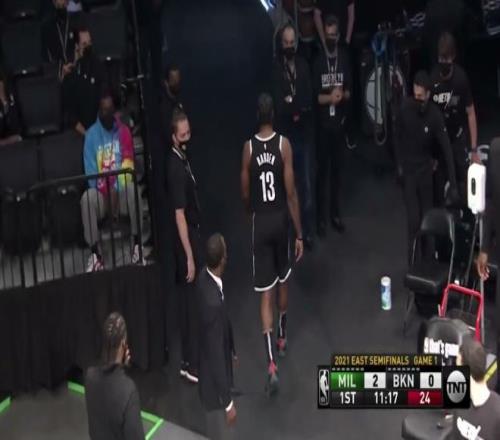 次輪G1對陣雄鹿,悲劇再次上演,比賽開始僅43秒,哈登就在一次突破后就捂著自己的右大腿后側(cè),一瘸一拐地返回了更衣室。