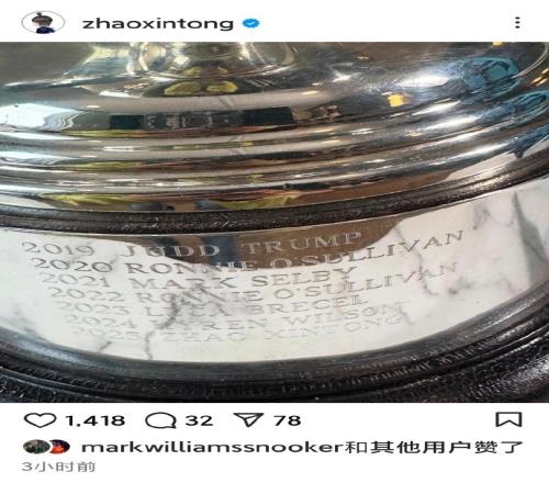 在去年斯諾克世錦賽中,趙心童決賽18-12擊敗馬克·威廉姆斯,成為首位奪得世錦賽冠軍的亞洲選手。