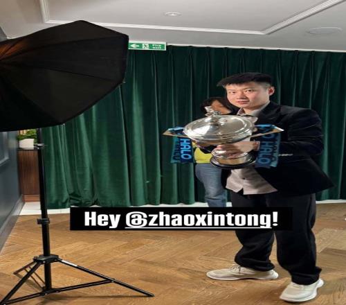 趙心童昨天首次參加世界冠軍晚宴,世錦賽冠軍獎杯上刻上了中國選手的名字。