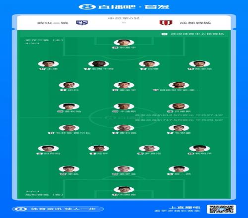 體育播報(bào)04月17日宣 北京時(shí)間20:00,中超第6輪,武漢三鎮(zhèn)主場對(duì)陣成都蓉城。賽前,雙方首發(fā)出爐?!颈緢霰荣悾p方五外援齊先發(fā),武漢三鎮(zhèn)首發(fā)21歲門將郭嘉宇,蓉城方面韋世豪、胡荷韜、賀一然先發(fā),拜合拉木、王子銘替補(bǔ)】