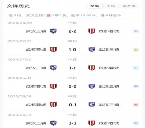 目前,武漢三鎮(zhèn)1勝1平3負(fù)積負(fù)1分位列第14,蓉城5輪不敗4勝1平積13分居榜首。