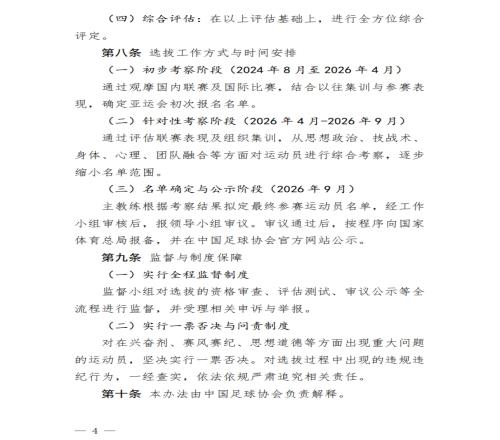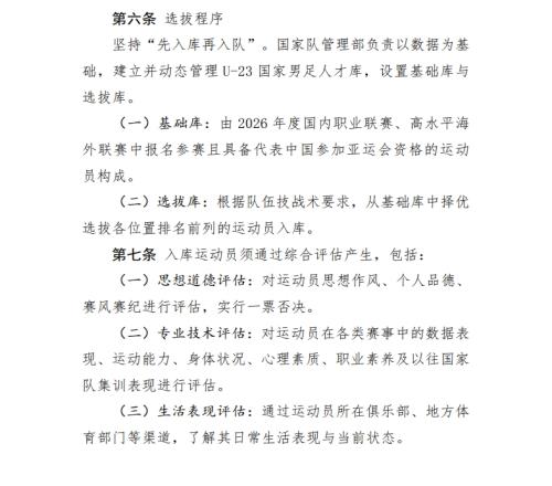 體育播報04月17日宣 中國足協(xié)今日公布了2026年愛知-名古屋亞運會男足項目的運動員選拔辦法,堅持“先入庫再入隊”原則,同時對于在興奮劑、賽風(fēng)賽紀、思想道德等方面出現(xiàn)重大問題的運動員,堅決實行一票否決。