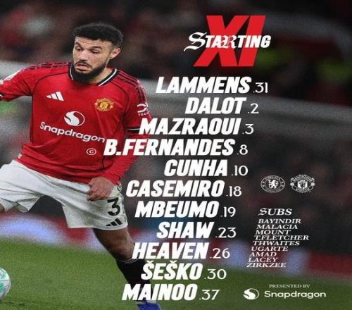 曼聯(lián)首發(fā):31-拉門斯、2-達(dá)洛特、3-馬茲拉維、26-海文、23-盧克-肖、37-梅努、18-卡塞米羅、8-B費(fèi)、10-庫(kù)尼亞、30-謝什科、19-姆伯莫