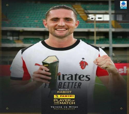 在本輪意甲,米蘭1-0小勝維羅納。本場比賽拉比奧打進(jìn)全場唯一進(jìn)球,賽后他也當(dāng)選意甲官方評選出的本場比賽最佳球員。