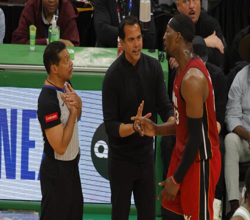 此役熱火中鋒阿德巴約出場(chǎng)34分鐘17投7中,三分10中4、罰球6中6砍下24分9籃板6助攻1搶斷1蓋帽,正負(fù)值+13。