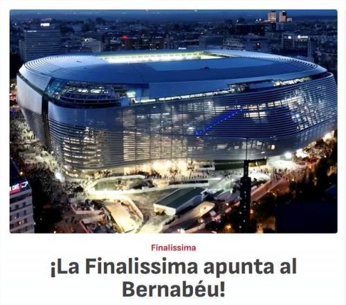 《阿斯報》指出,皇馬的主場伯納烏球場,在眾多候選場地中脫穎而出,這是確定的答案,各方還在敲定一些安全細節(jié)。歐足聯(lián)、南美足聯(lián)均認為,伯納烏球場是舉辦此類規(guī)模賽事的最佳選擇。