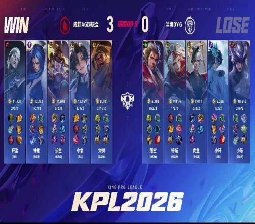 體育播報3月12日宣 2026KPL春季賽本場比賽是由成都AG超玩會對陣到深圳DYG!面對核心中野回歸的AG,DYG能否拿下強敵!