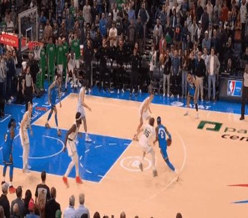 然而杰倫那記追平跳投實在精彩:卡森的補防和多特的站位已經(jīng)吃掉了他所有空間,杰倫停球,轉(zhuǎn)身,超難度的中投。