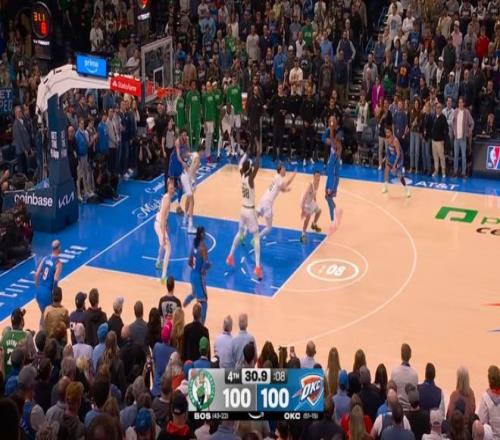 ——剩下30秒前,亞歷山大再次中投命中,雷霆102-100凱爾特人