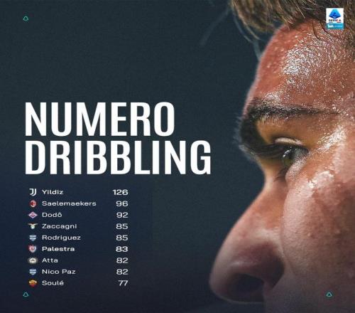 本賽季意甲過(guò)人榜:伊爾迪茲126次第1,薩56第2,國(guó)米無(wú)人上榜