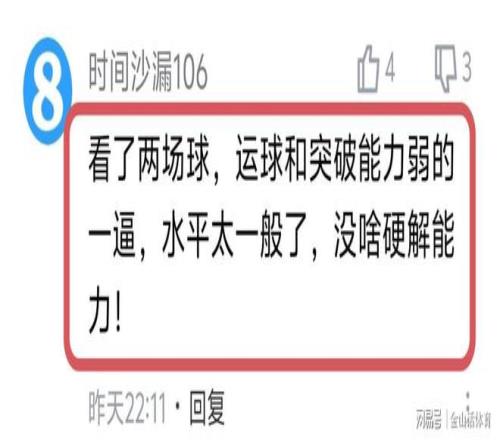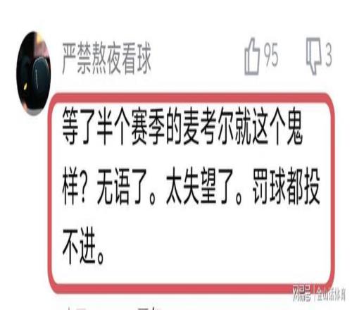 麥考爾糟糕的表現(xiàn),也讓廣東球迷大失所望,紛紛在網(wǎng)絡平臺吐槽?!暗攘税雮€賽季的麥考爾就這個鬼樣?無語了。太失望了。罰球都投不進。”;“看了兩場球,運球和突破能力弱的一逼,水平太一般了,沒啥硬解能力!”;“打了兩場了,啥水平看不出來嗎?而且大傷了,不知道哪的自信?”;“不要懷疑朱杜選外援的眼光,從來沒有選到一個能打球的?!薄?/p>