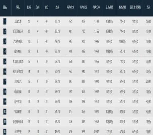 本賽季至今,廣東隊(duì)取得18勝7負(fù)排名聯(lián)盟第三,遼寧隊(duì)則以13勝12負(fù)位列聯(lián)盟第九。