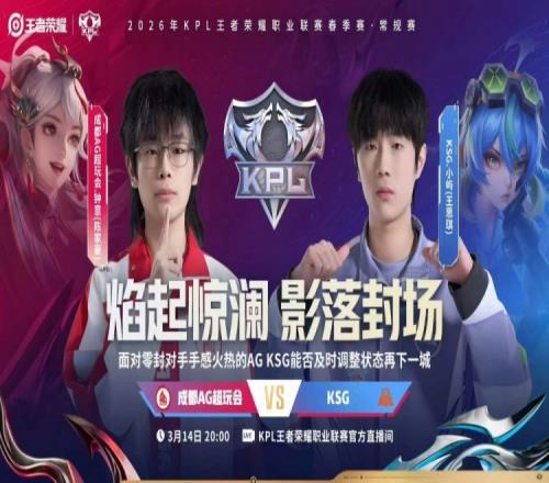 體育播報(bào)3月14日宣 2026KPL春季賽本場(chǎng)比賽是由成都AG超玩會(huì)對(duì)陣到KSG!
