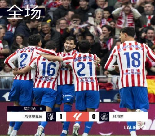 在馬德里的另一場比賽,馬競也貢獻(xiàn)了一記世界波,憑借莫利納開場8分鐘的禁區(qū)外爆射死角,馬競主場1比0小勝赫塔費(fèi),相同場次的情況下領(lǐng)先黃潛2分位居第3。