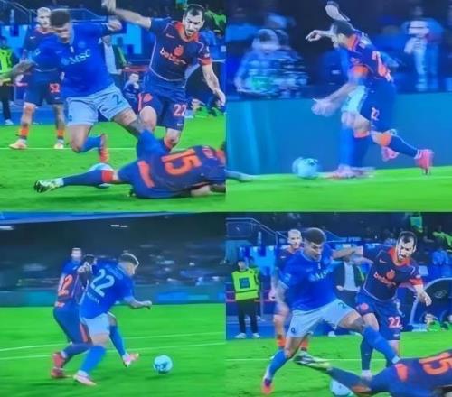凱芙侖圖拉姆的犯規(guī)動作之明顯,連當(dāng)值主裁判都已經(jīng)將哨子含在了嘴里, 然而,就在電光火石之間,裁判收回了哨聲,VAR也沒有介入,進(jìn)球居然有效。