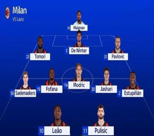 米蘭352:邁尼昂;托莫里、德溫特、帕夫洛維奇;薩勒馬科爾斯、福法納、莫德里奇、亞沙里、埃斯圖皮尼安;萊奧、普利西奇