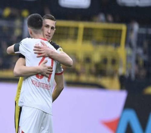 北京時(shí)間3月14日,德甲第26輪,多特蒙德2-0奧格斯堡。多特蒙德的尼科-施洛特貝克和奧格斯堡的凱文-施洛特貝克各自作為隊(duì)長(zhǎng)帶領(lǐng)球隊(duì)登場(chǎng)。