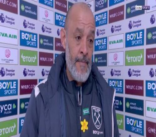 英超第30輪,西漢姆聯(lián)主場1-1戰(zhàn)平曼城,西漢姆聯(lián)主帥努諾賽后接受了拜因體育的采訪。