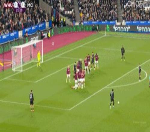 劍南春曼城11西漢姆聯(lián),B席吊射,賴(lài)因德斯中框