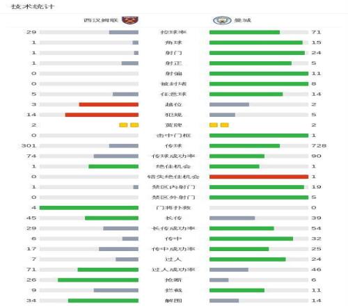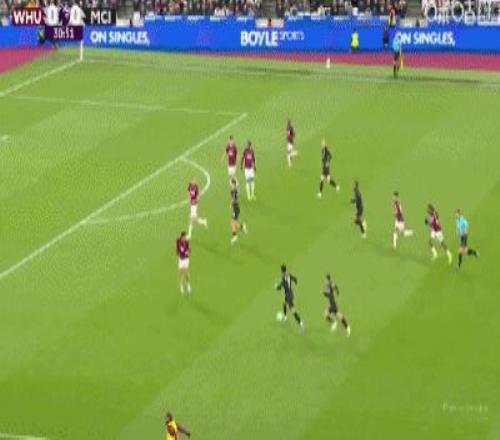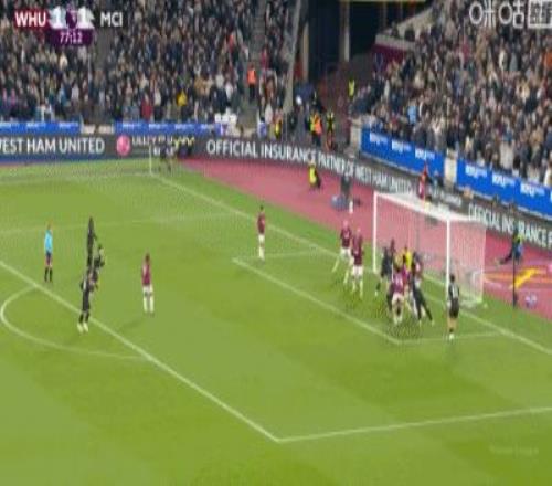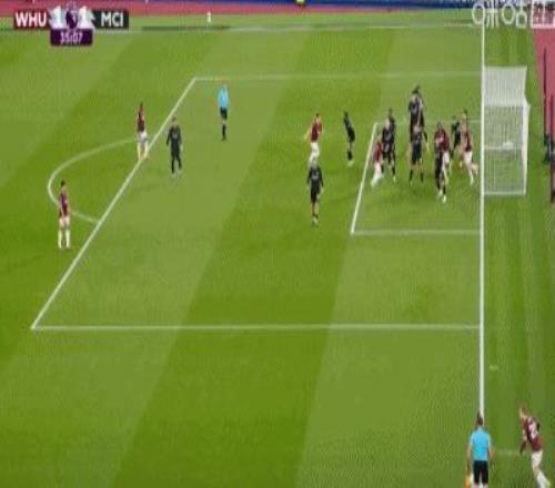 第31分鐘,B席禁區(qū)左路吊射破門(mén),曼城1-0西漢姆聯(lián)