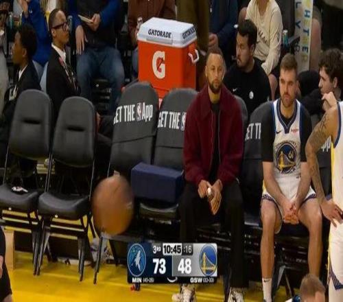 飆中一個3分,轉(zhuǎn)頭就去找?guī)炖镎f話,替補(bǔ)席上孤伶伶的庫里閉上眼睛搖搖頭,并不想理他