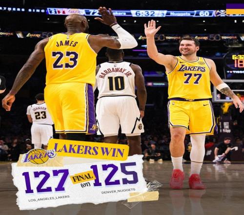 湖人加時(shí)賽127-125險(xiǎn)勝掘金,這是一場(chǎng)蕩氣回腸的拉鋸戰(zhàn),湖人一度領(lǐng)先掘金17分,可末節(jié)掘金一度反超湖人8分,可決勝時(shí)刻?hào)|契奇率先挺身而出連續(xù)得分抹平分差,里夫斯1.9秒兩罰一中+拋投絕平,加時(shí)賽艾頓連續(xù)單吃約基奇,東契奇0.5秒完成決勝一擊。