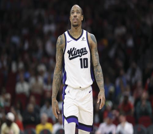本場比賽,國王前鋒德羅贊高效發(fā)揮,出場36分鐘14投11中,三分1中0、罰球5中5拿到27分7助1搶斷,也有4失誤,正負值+9。