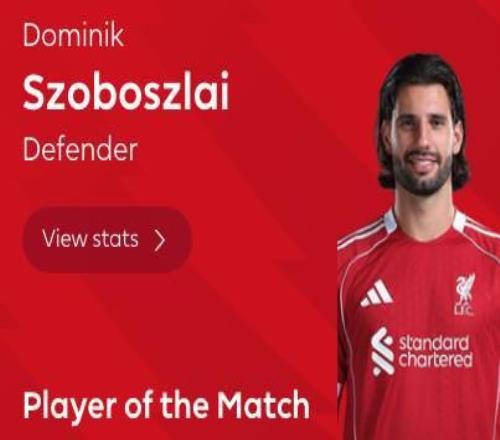 任意球破門(mén),索博斯洛伊當(dāng)選利物浦vs熱刺全場(chǎng)最佳球員