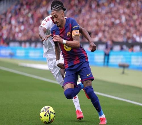 比賽剛剛開(kāi)始8分鐘,巴薩就創(chuàng)造了點(diǎn)球機(jī)會(huì)??踩逶诮麉^(qū)內(nèi)被放倒,裁判判罰點(diǎn)球。拉菲尼亞主罰,他騙過(guò)門將,罰出了勺子點(diǎn)球!巴薩獲得夢(mèng)幻般的開(kāi)局。第16分鐘,奧爾莫在禁區(qū)外嘗試一腳遠(yuǎn)射,被撲了出去。2分鐘后,坎塞洛制造對(duì)方禁區(qū)內(nèi)手球。巴薩再次獲得點(diǎn)球機(jī)會(huì)。依然是拉菲尼亞主罰,他再次罰進(jìn),梅開(kāi)二度!