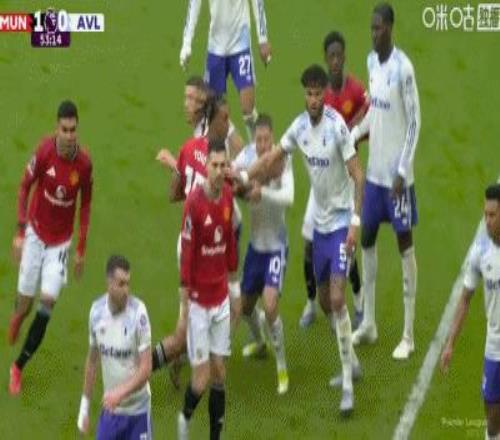 第53分鐘,B費開出角球,卡塞米羅前點頭球破僵,曼聯(lián)1-0領先維拉!